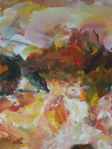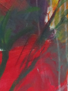 Mit der zweiten Übung wird es farbig. Auf wahllos gesetzten Farbflecken (Grundierung) wird ein nachträglich ausgewähltes Motiv gezeichnet, das Flächen und Räume absteckt. Dann geht es ans Malen – aber nicht an das „Ausmalen“ – des Motivs. Ziel dieser Übung ist das expressive Spiel mit der eher zufällig angelegten Grundierung, sei es durch den Einsatz von Lasuren, dem Spiel mit den Grenzen, oder dem gezielten Nichtbemalen von Flächen. Das gekonnte Zusammenwirken dieser malerischen Strategien und Techniken schafft den Eindruck malerischer „Anmut.“